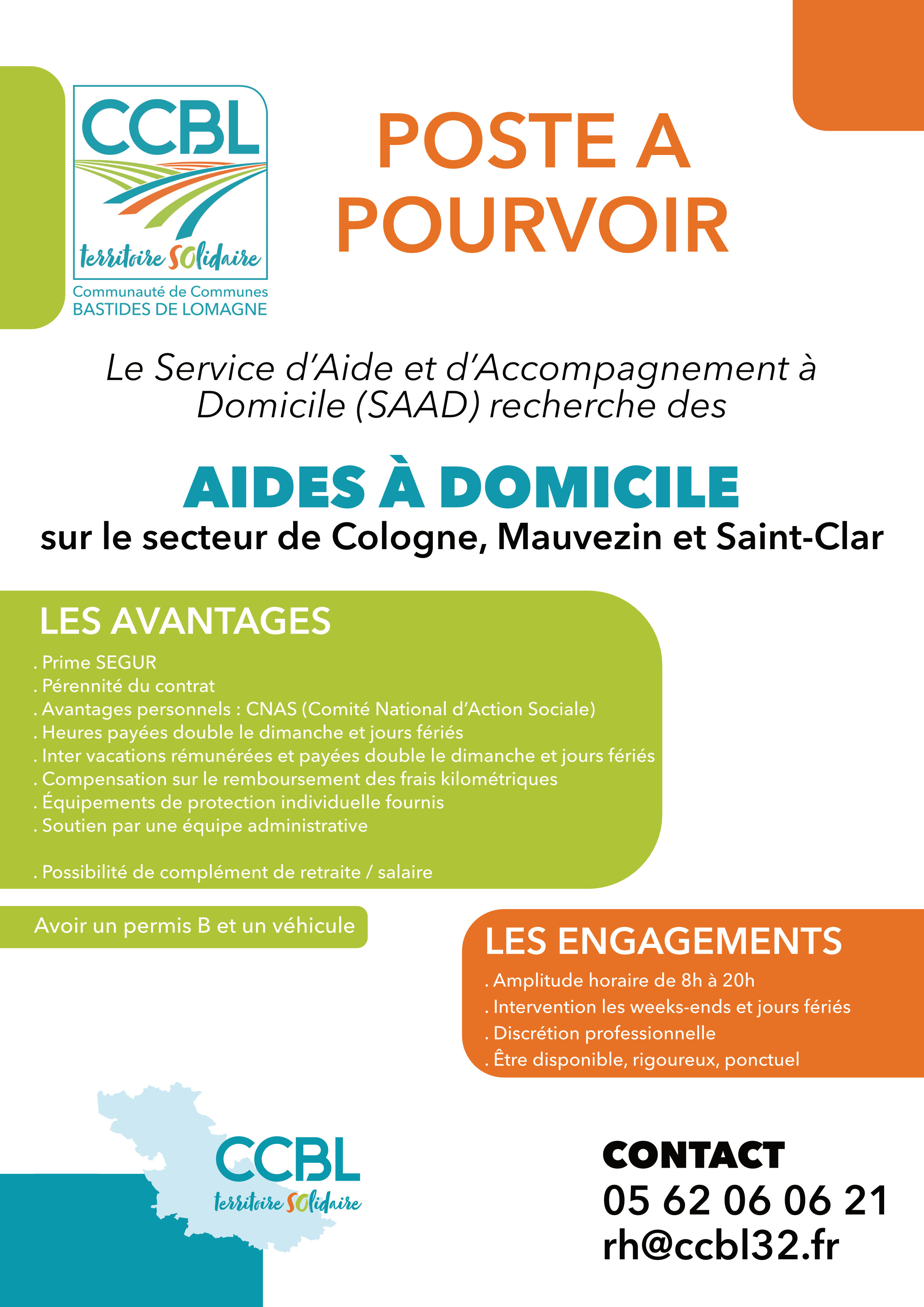 Rejoignez notre équipe du Service d'Aide et d'Accompagnement à Domicile de la Communauté de Communes Bastides de Lomagne !